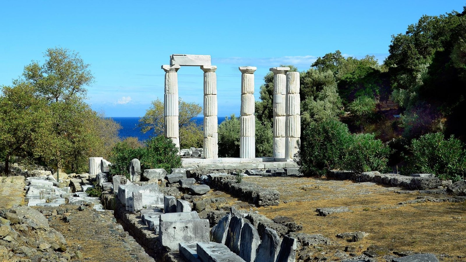 The ruins of this ancient Greek colony are located right on the coast. You can see the remains of the city walls, the houses with their unique storage jars, and the sanctuary of Apollo, all overlooking the sea toward the island of Samothrace.